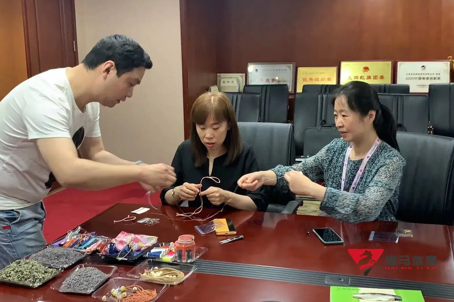 制作前,华体会体育的手工老师首先介绍了端午的习俗以及端午节制作香囊与五彩绳的来历,让大家在活动前了解端午的民俗文化,手工老师将精心准备的有着美好寓意的五色彩绳、色彩绚丽的香包袋以及清香的艾草薰衣草,送到职员手中,携手制作香包和五彩绳。